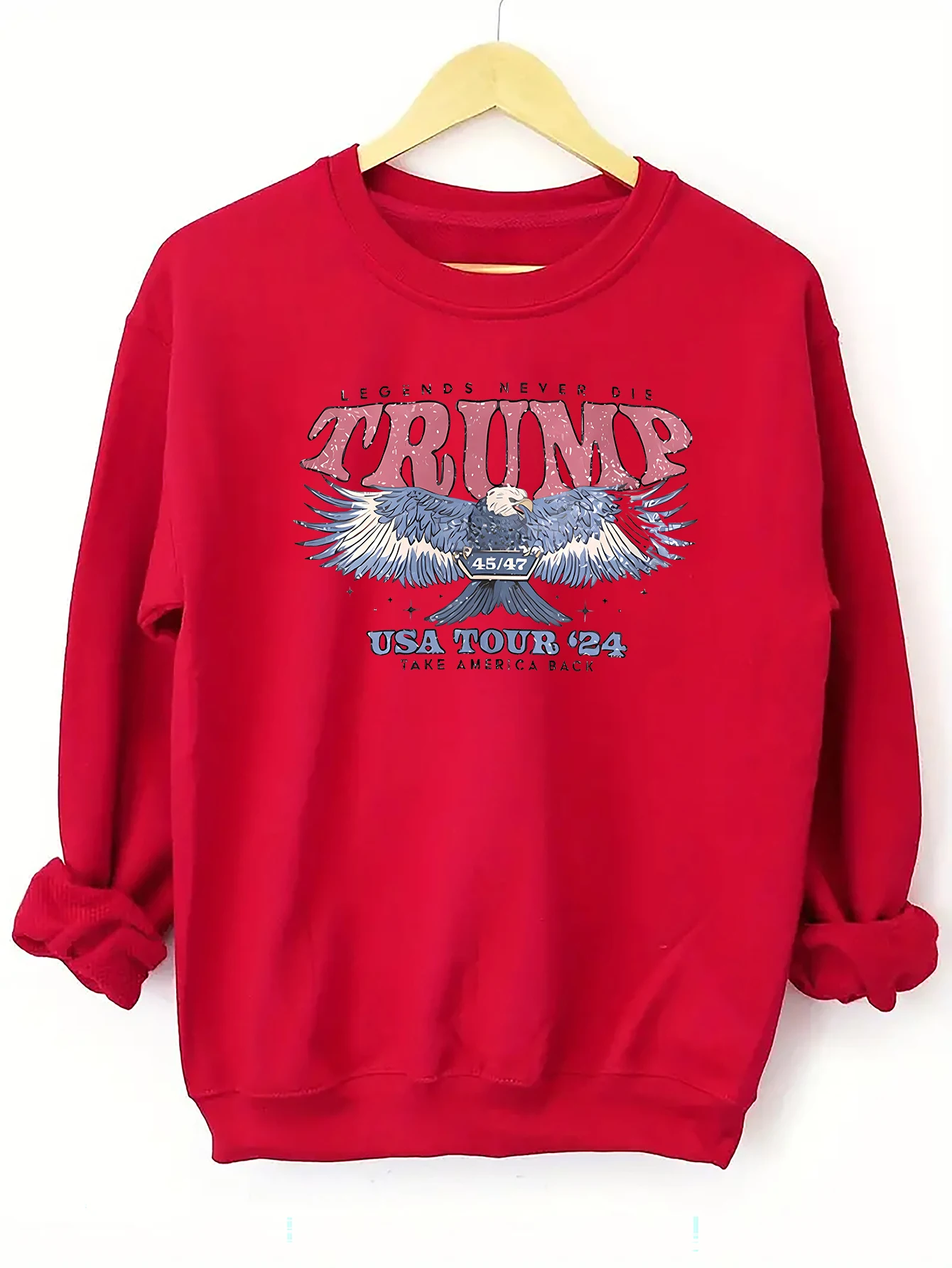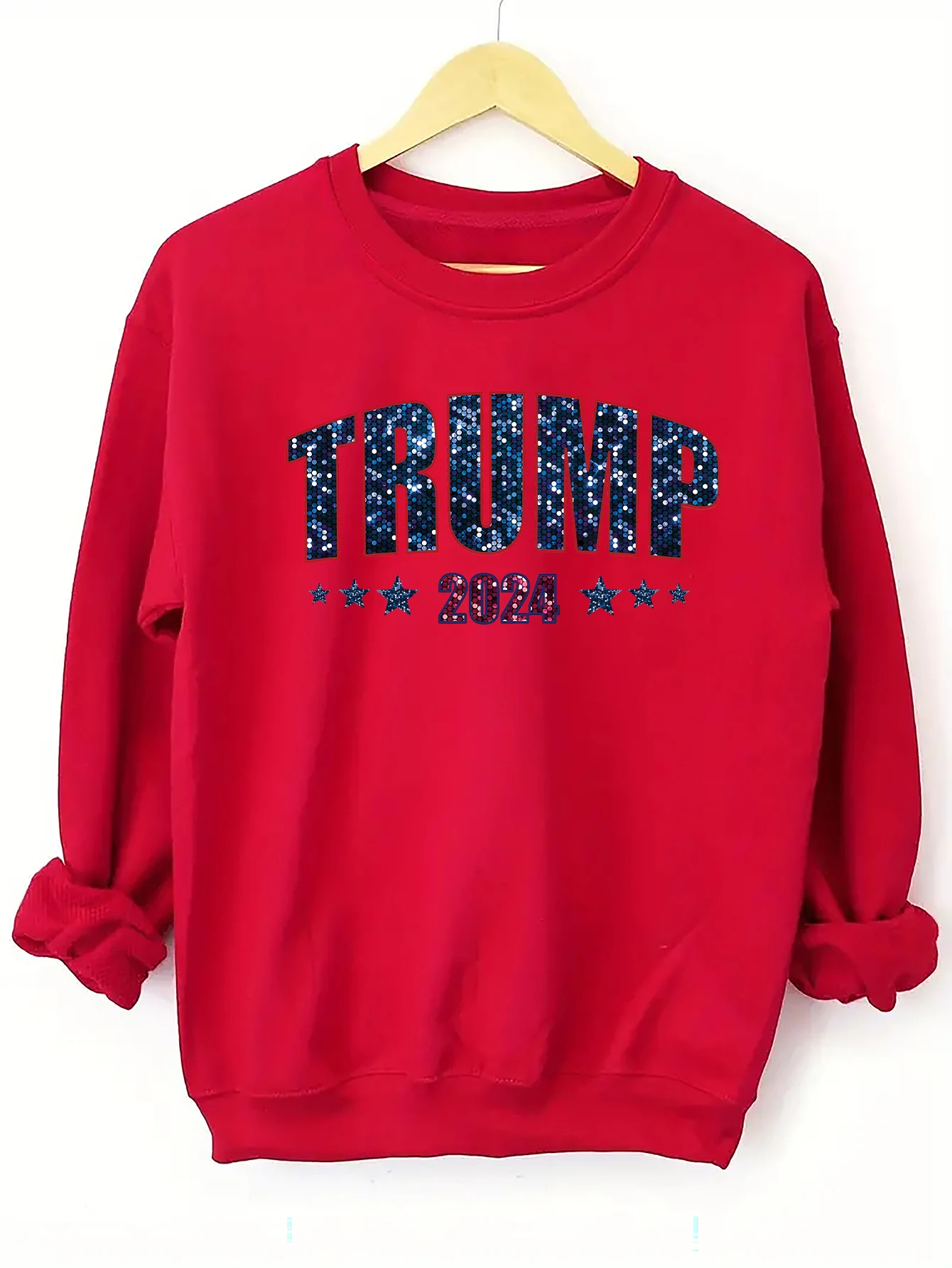 2024 Presidential Election, Mr. Trump – graphic, printed long-sleeved crew neck casual sweatshirt, fashionable women's clothing