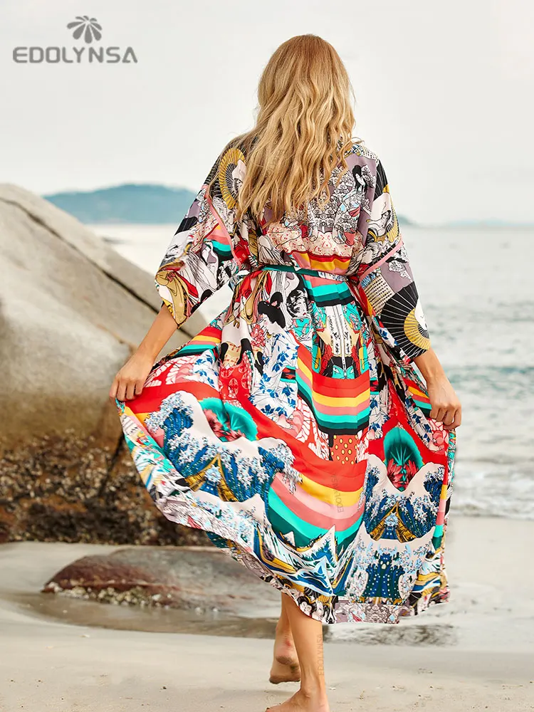 Be the first to review “2025 Blue Retro Printed Long Sleeve Self Belted Plus Size Bohemian Kimono Tunic Women Tops and Blouses Shirts Q1228”