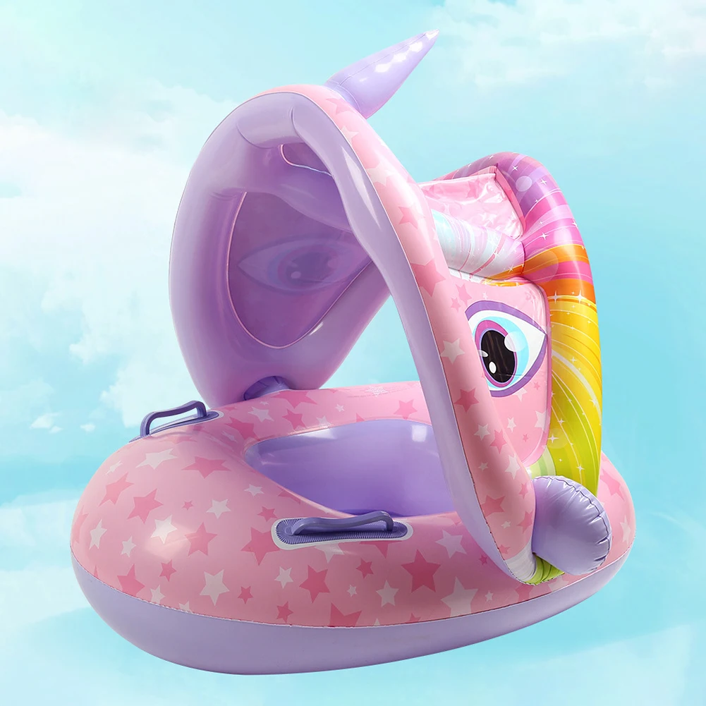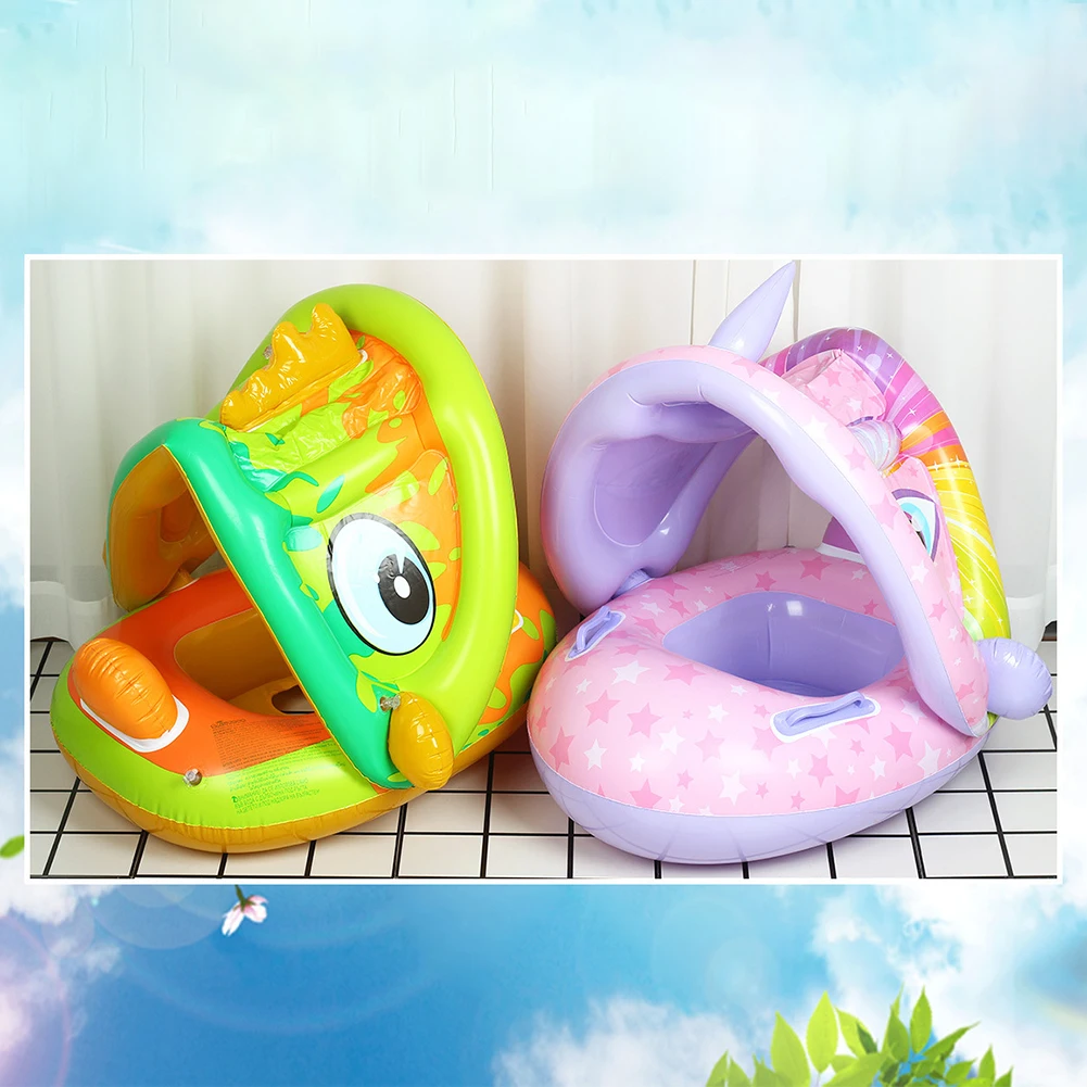 PVC Pool Swimming Circle Smooth with Sun Shade Swimming Pool Floaters Wear-Resistant Soft Unisex Convenient for Summer Vacation