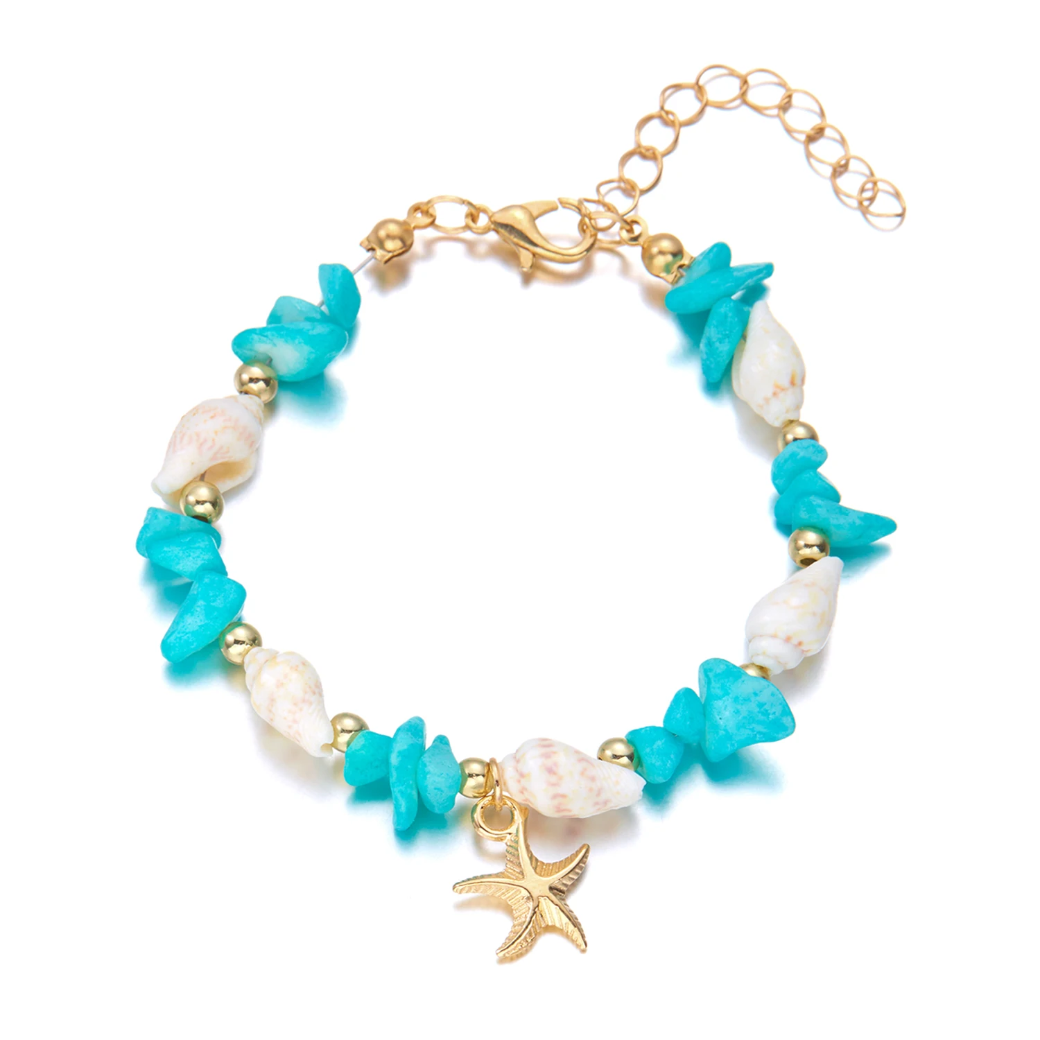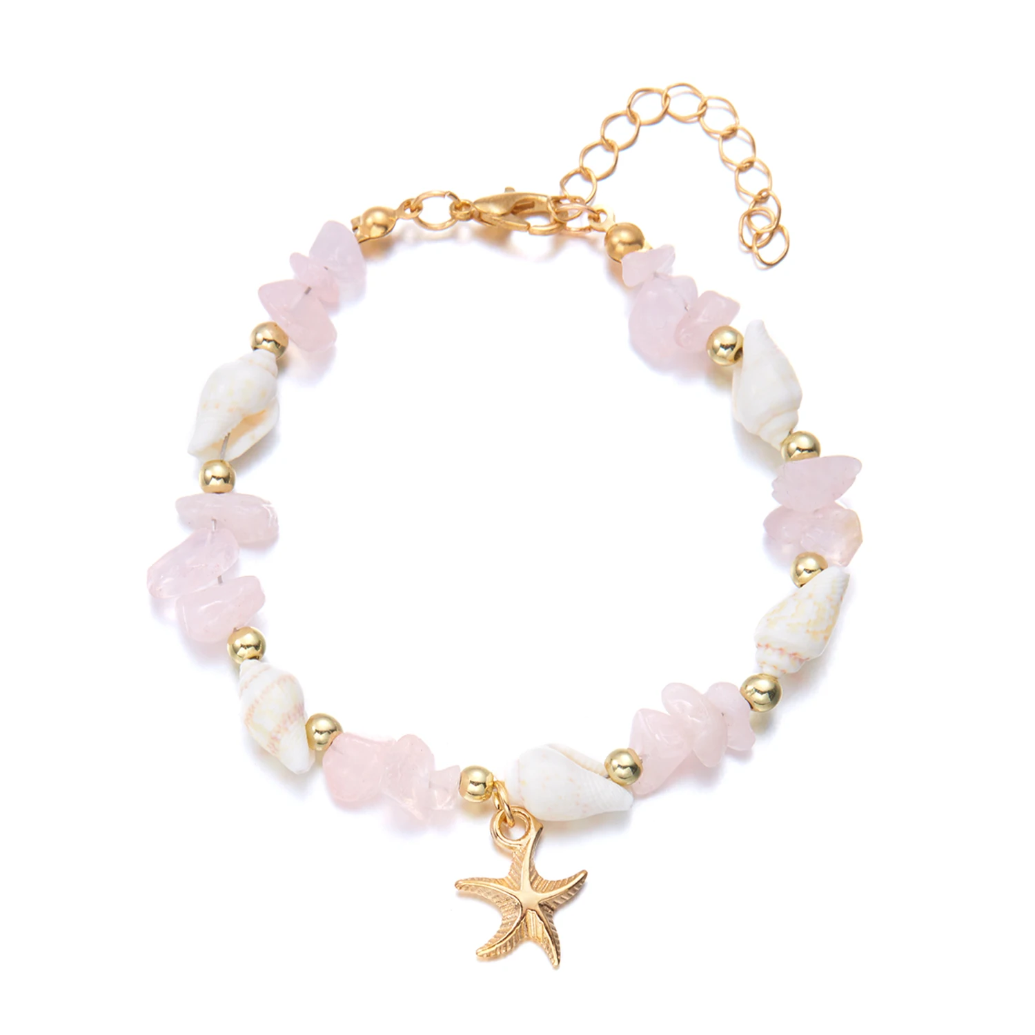 Bohemian Starfish Pendant Bracelet for Women Handmade Crushed Stone Beaded Bracelet Summer Beach Jewelry Travel Accessory Gift