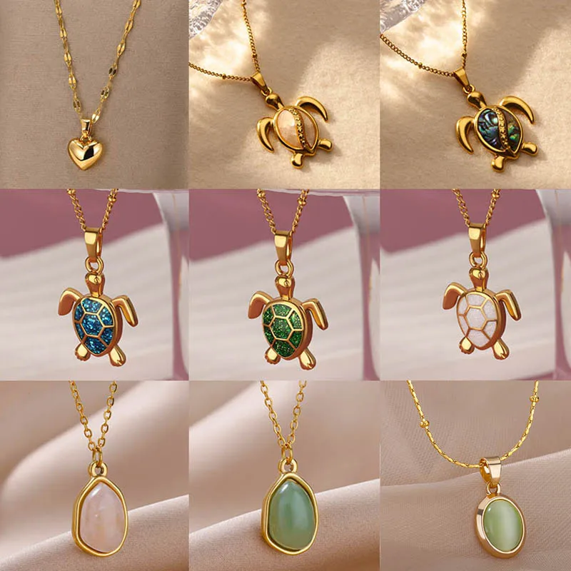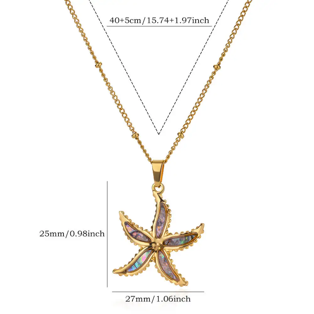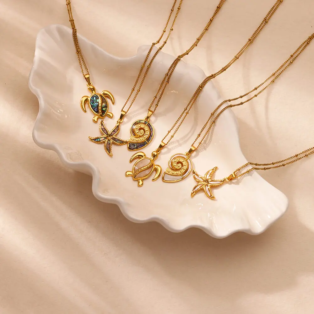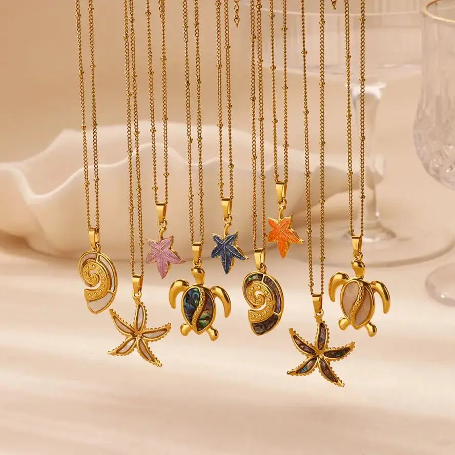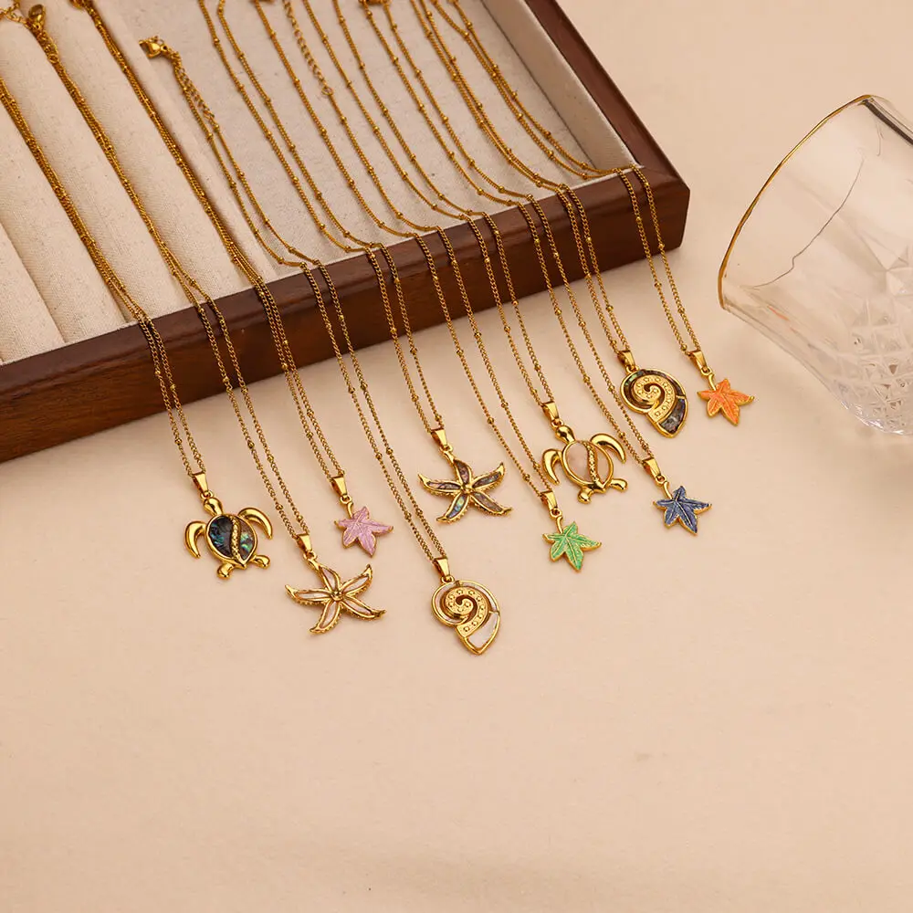Colorful Starfish Sea Turtle Conch Necklace For Women Gold Color Stainless Steel Pendant Necklace Wedding Christmas Jewelry Gift