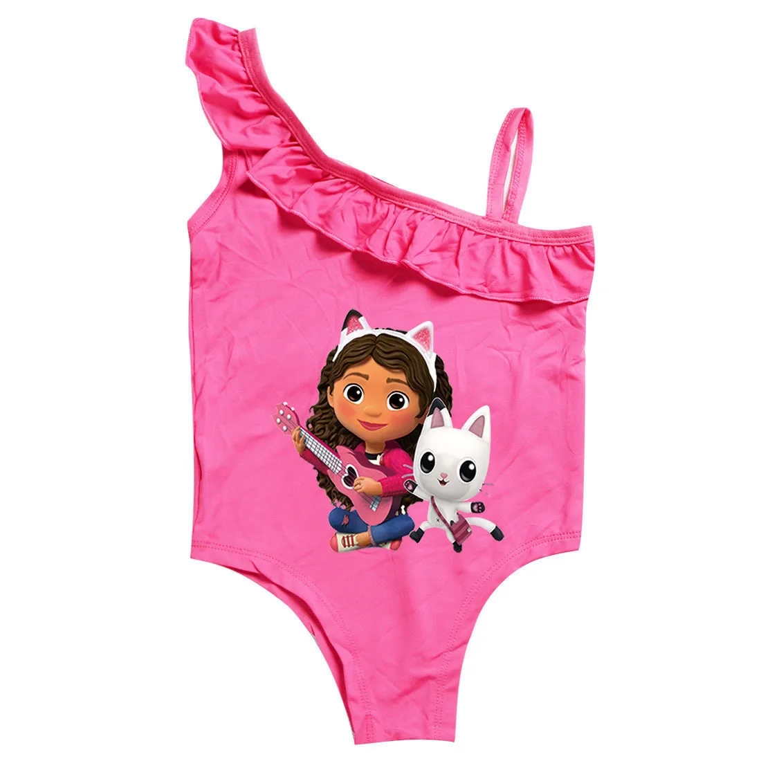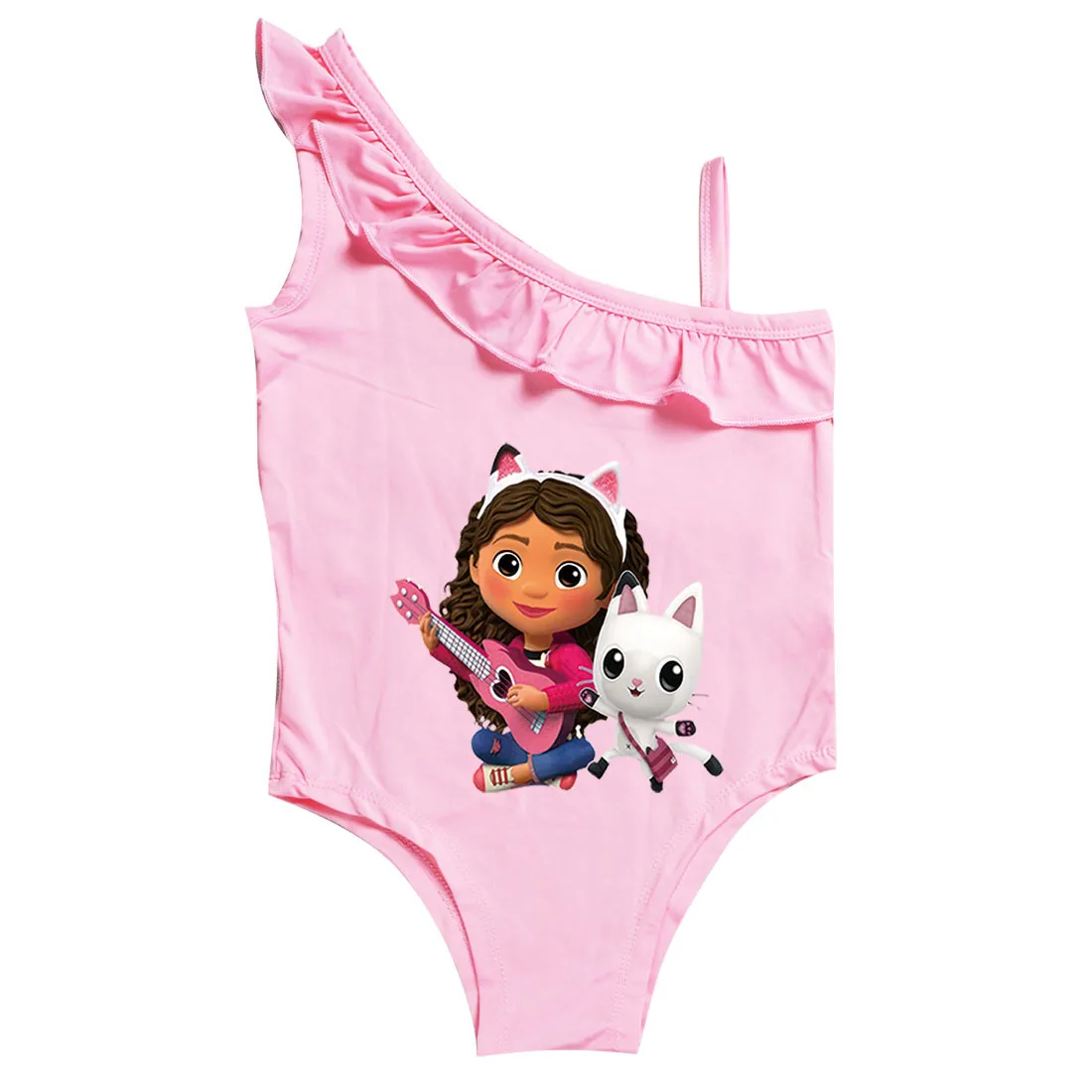 Set Children Sleeveless Swimming Girls Cartoon Gabbys Chat Swimsuit