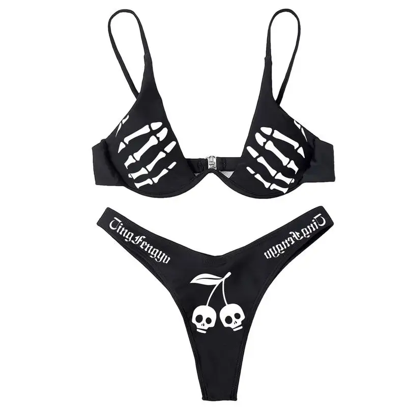 3.Soft Feeling: Our skull bikini sets are crafted from polyester for skin-friendly and long lasting wear, with softness and excellent elasticity to show off your figure while providing necessary support.