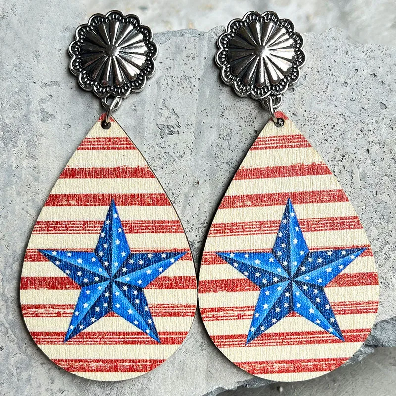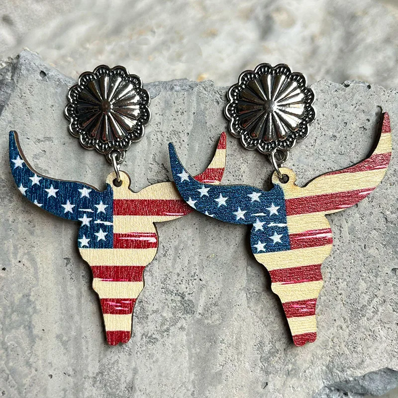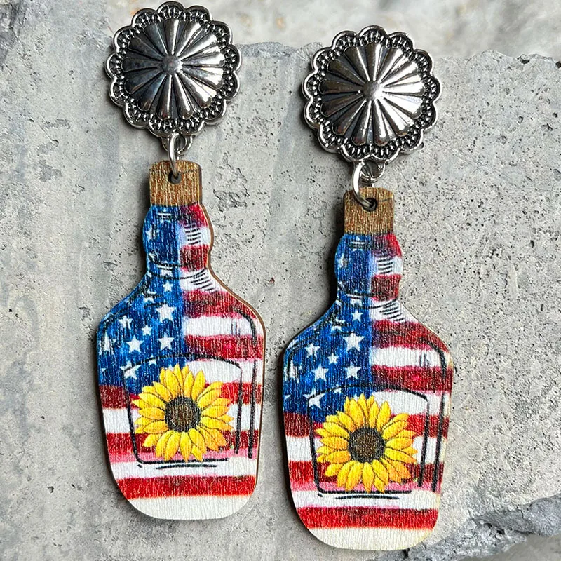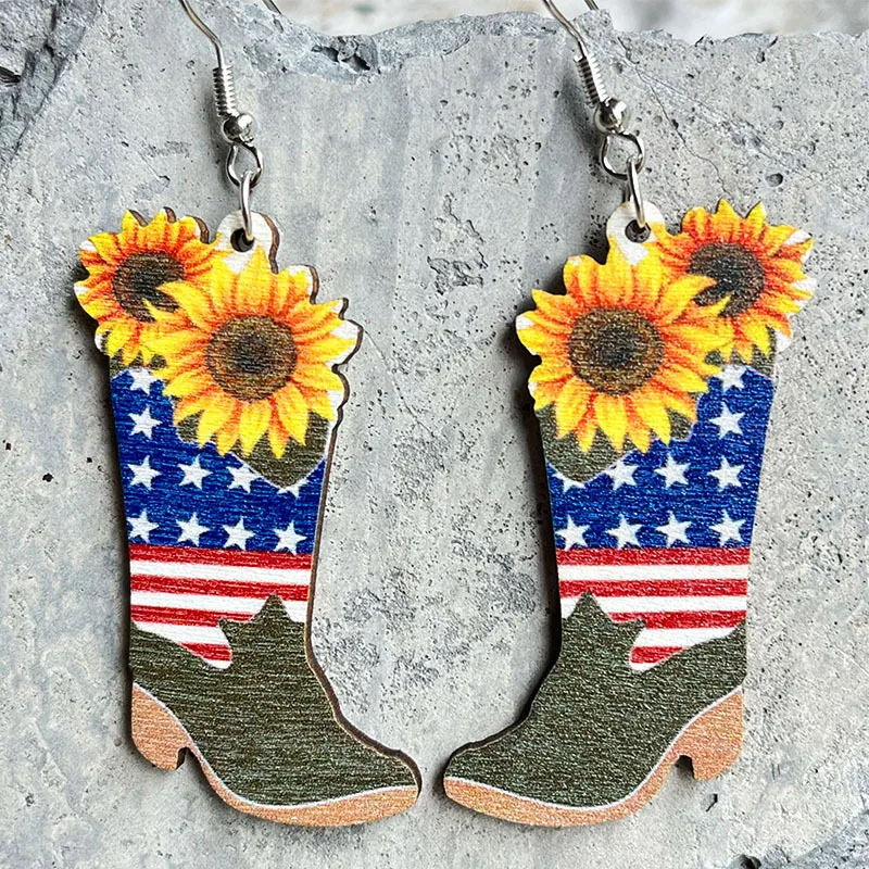 New American Independence Day Earrings July 4th Festival Decoration Western Cowboy Sun Flower Boots Cowhead Hat Ear Rings
