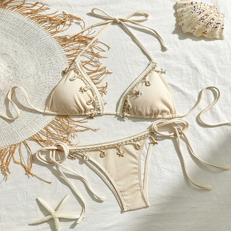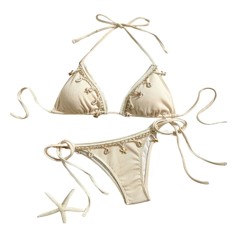 Featured adjustable tie, this women two pieces bathing suit offers perfectly fit to accommodate various body while the triangular cups provide excellent support and shaping.