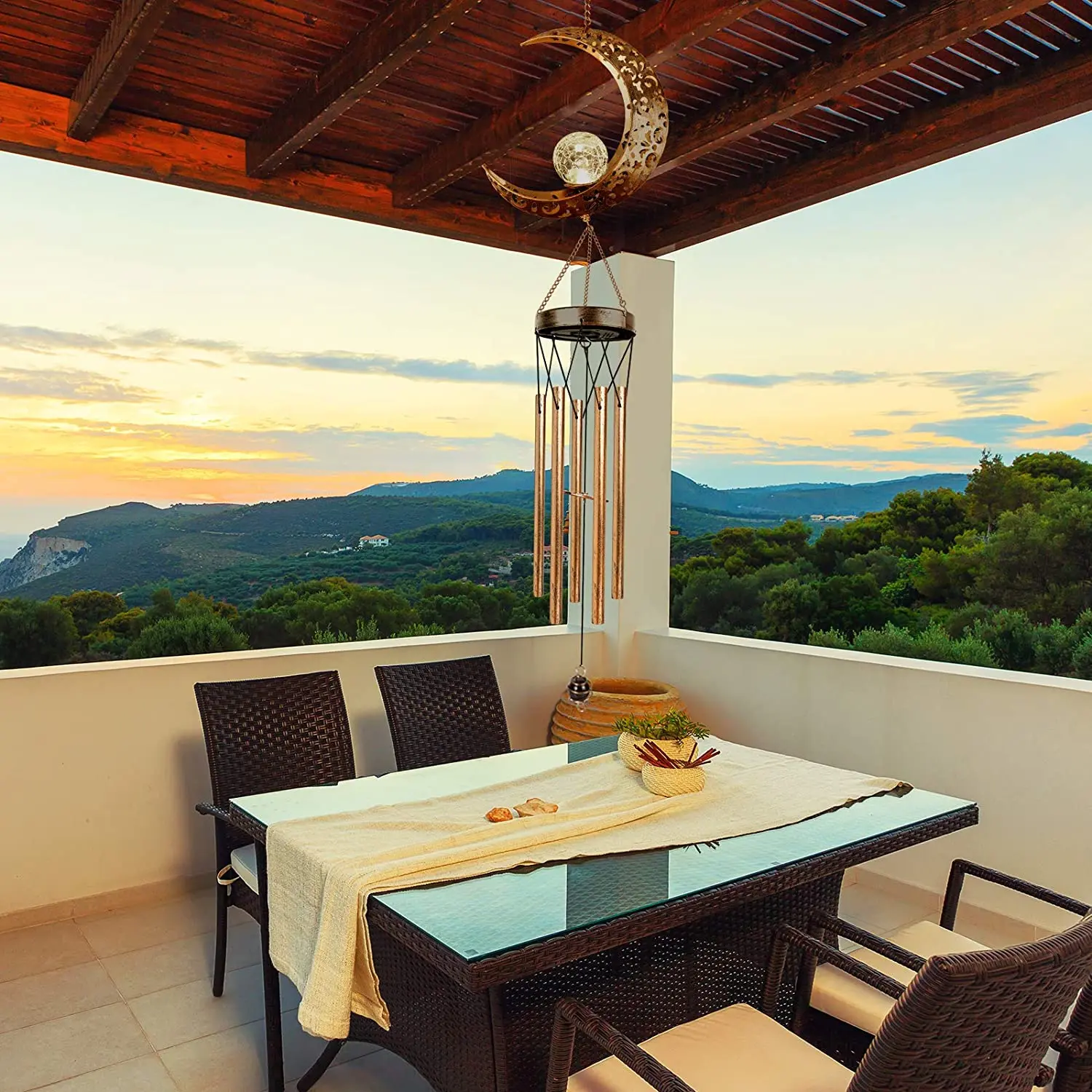 【Novel Hollowed-out Design】Light will go more easily through the hollowed-out sun shape, making the metal icon of sun luminous more evenly. The power cord is also hidden by climbing up the metal string. As a result, the whole outline of wind chimes will be more organized with such a design.
