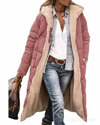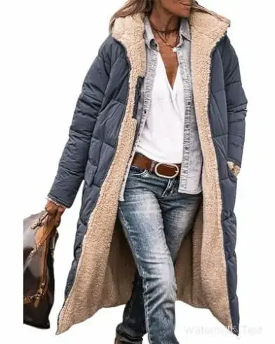 Women Solid Color Hooded Cotton Clothes Long Sleeves Double-sided Wear Slim Fleece Inside Loose Jacket Parka