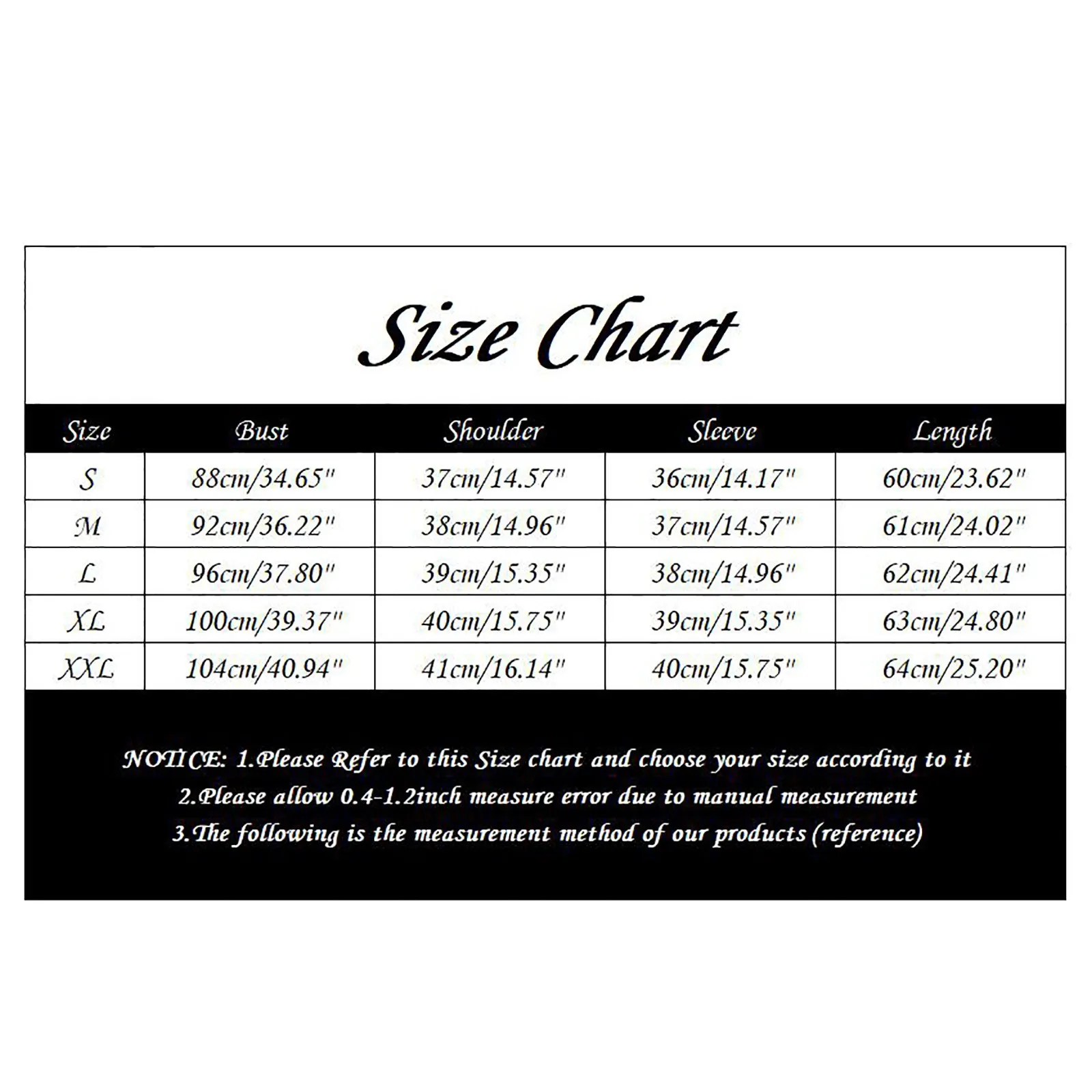 | Size:XL | bust:100cm/39.37” | Shoulder:40cm/15.75” | Sleeve:39cm/15.35” | Length:63cm/24.80” |