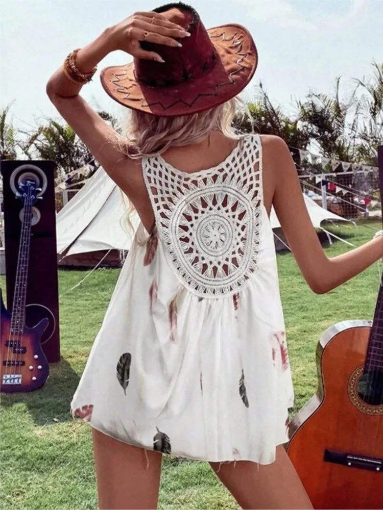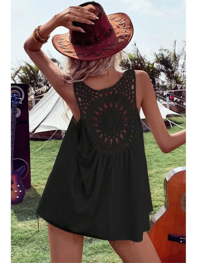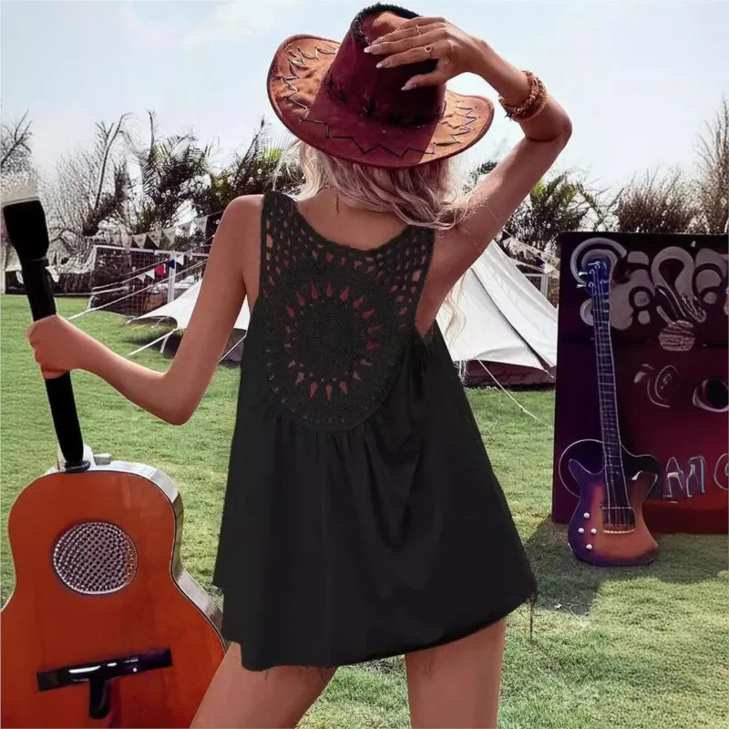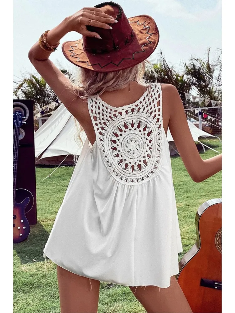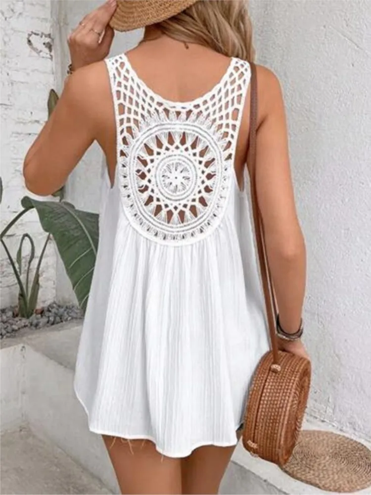 Women’s White Tank Blouses Boho Fashion Simple Back Lace Hollow Vest Tops 2024 New Summer Sexy Beach Vacation Women Clothing